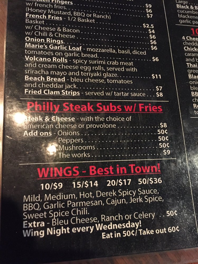 “ This place is pretty cute! They have lots of fun sport memorabilia on the walls and funny signs. I've only been twice for bingo night and it's been really fun! I got a burger on my second visit. It came with fries. The food was good but would try something else next time as the burger was basic and could have used a second or thicker piece of cheese. I highly recommend coming on a Tuesday night for bingo it's a lot of fun, they play several rounds and you can choose which ones you'd like to play. Sadly I only took pictures of the patriots decor. ”
